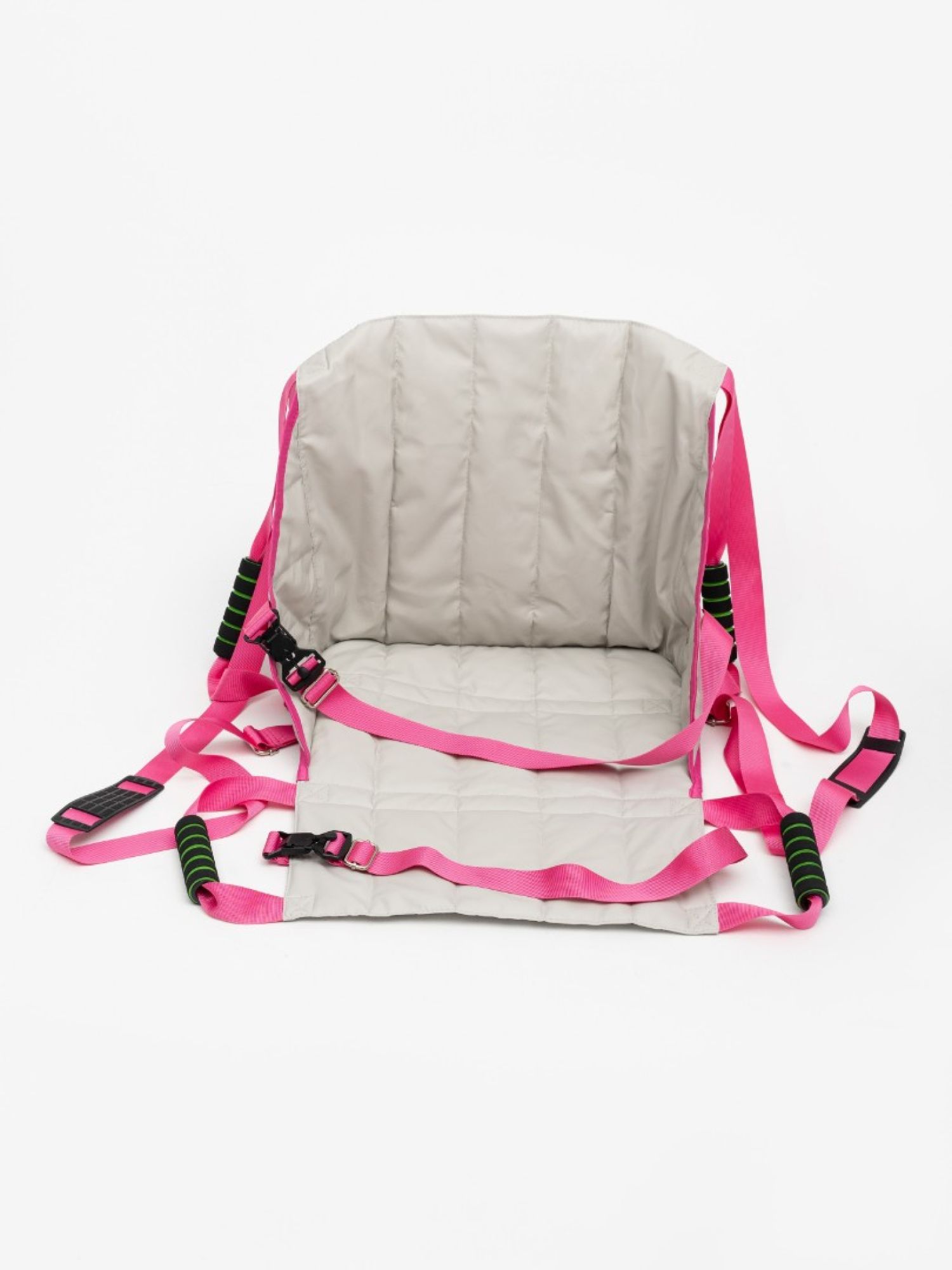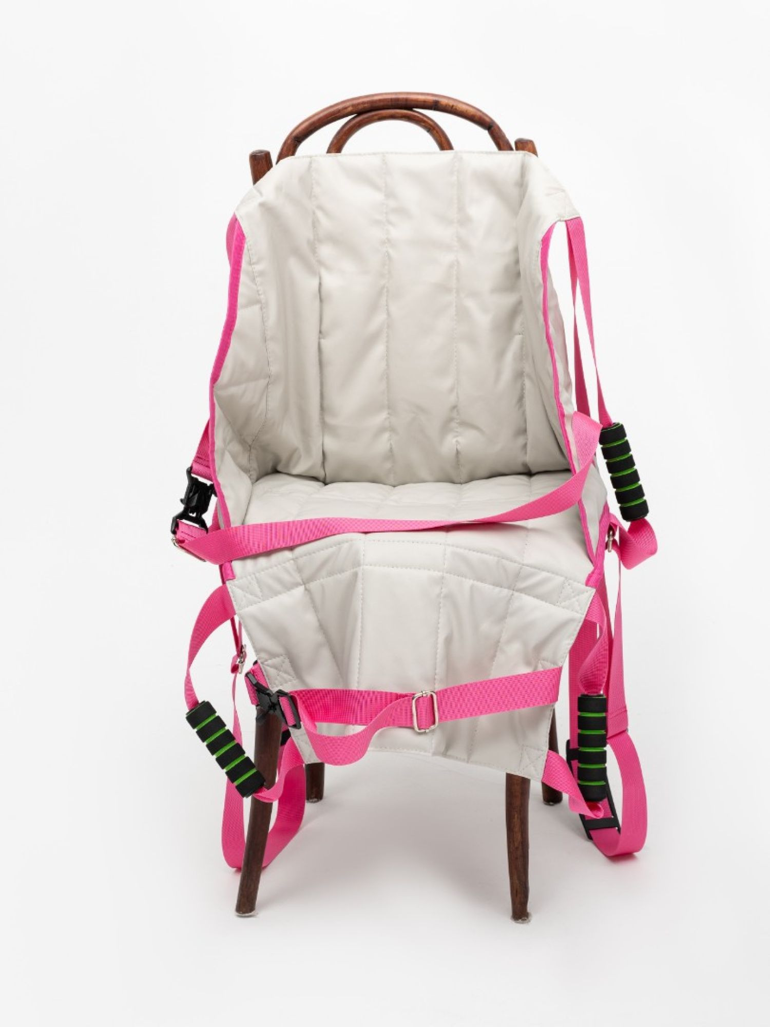 Переноска предназначена для перемещения человека в инвалидное кресло и из него. Выполнена в виде мягкого кресла с ручками для переноски. Фиксируется липучками к каркасу инвалидного кресла. Так же может быть использована для переноски маломобильных людей для решения повседневных задач, связанных с передвижением. Состав: ткань Интерлок, наполнитель синтепон.
